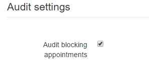 • Audit blocking appointments - when this check box is checked, it will be logged in the Calendar audit functionality, when so called Blocking Appointments are created or edited. Blocking Appointments are used to block the possibility to book an Appointment for a certain Resource, during a certain point in time. By default this is logged.
