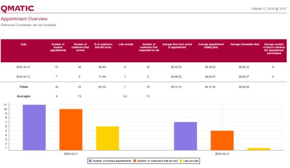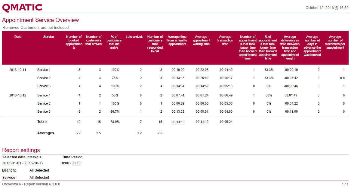 Average waiting time | Average waiting time for all transactions where the Customer arrived to the Appointment. |
