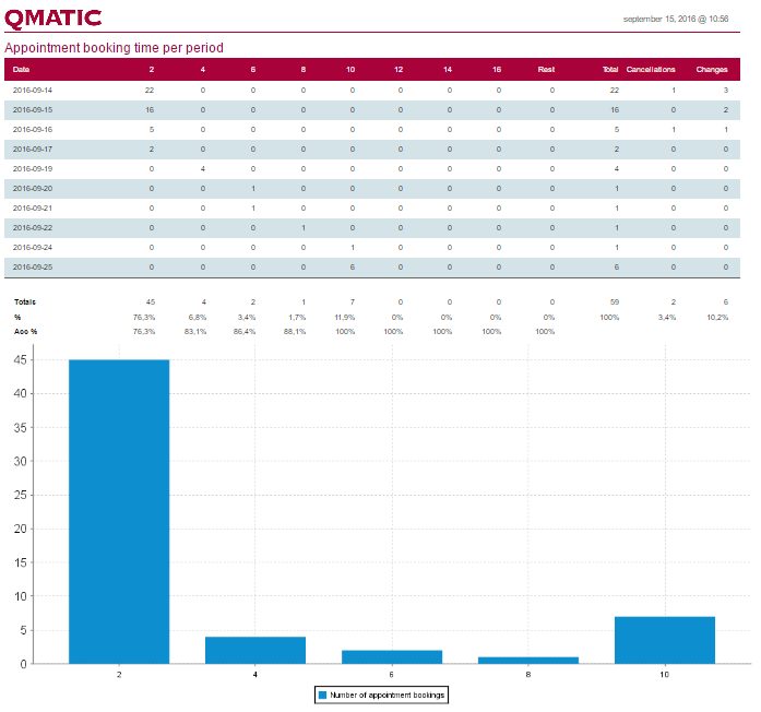 Number of changes | The number of times that the same Appointments as above have been changed. Each change is counted. |