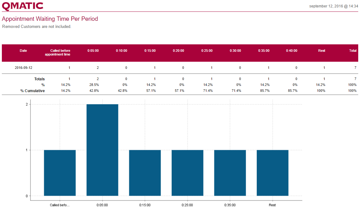 Intervals | Number of Customers with an Appointment waiting time within each interval. The column shows the end of the interval. |