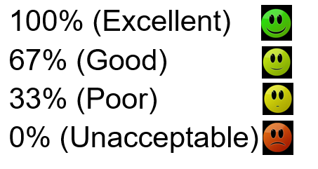 Avg. Satisfaction Level | The average of all included answers (100, 67, 33, and 0). |