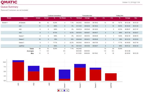 Branch totals | Total values for the whole Branch. Average transaction time and average waiting time is for all Customers included in the report. |