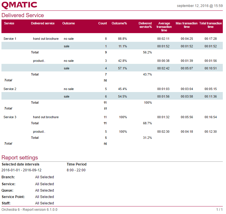 Total delivered service | The total times the Delivered Service was registered (sum of Outcomes). |