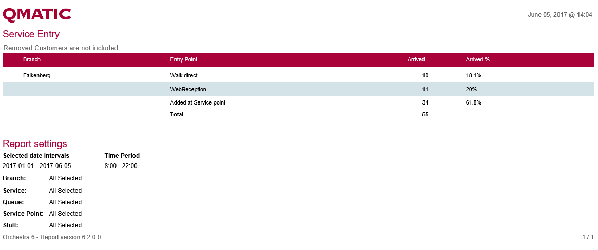 Arrived | The total number of Customers that started the Visit at the Entry Point. |