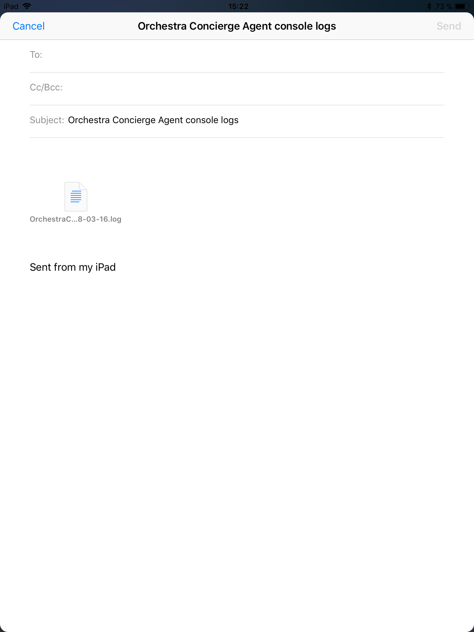 • Whether or not to Enable logs - by default this is disabled. If you have enabled this, you can press and hold the Enable logs setting, then send the logs, for example via email, as shown in the pictures below:
