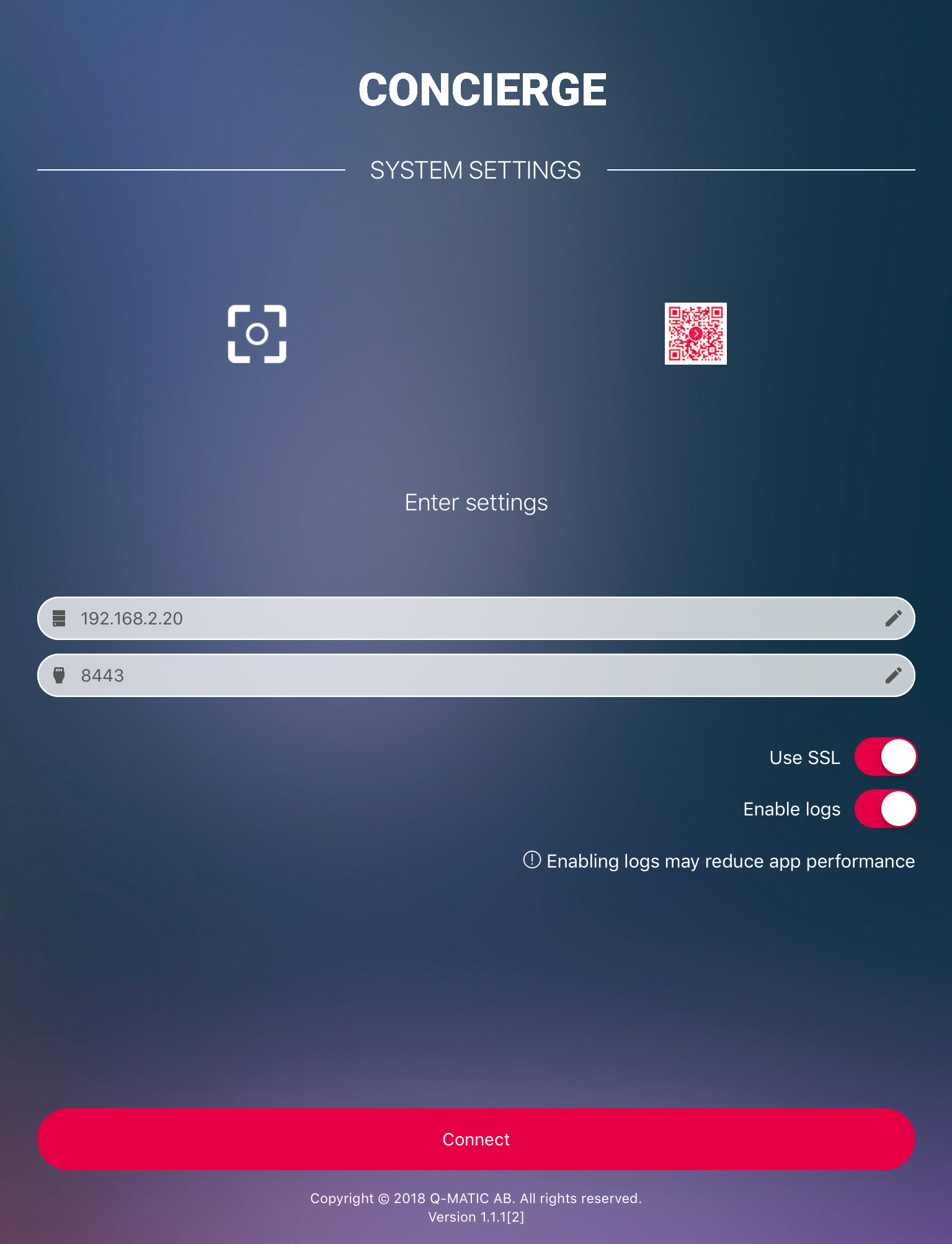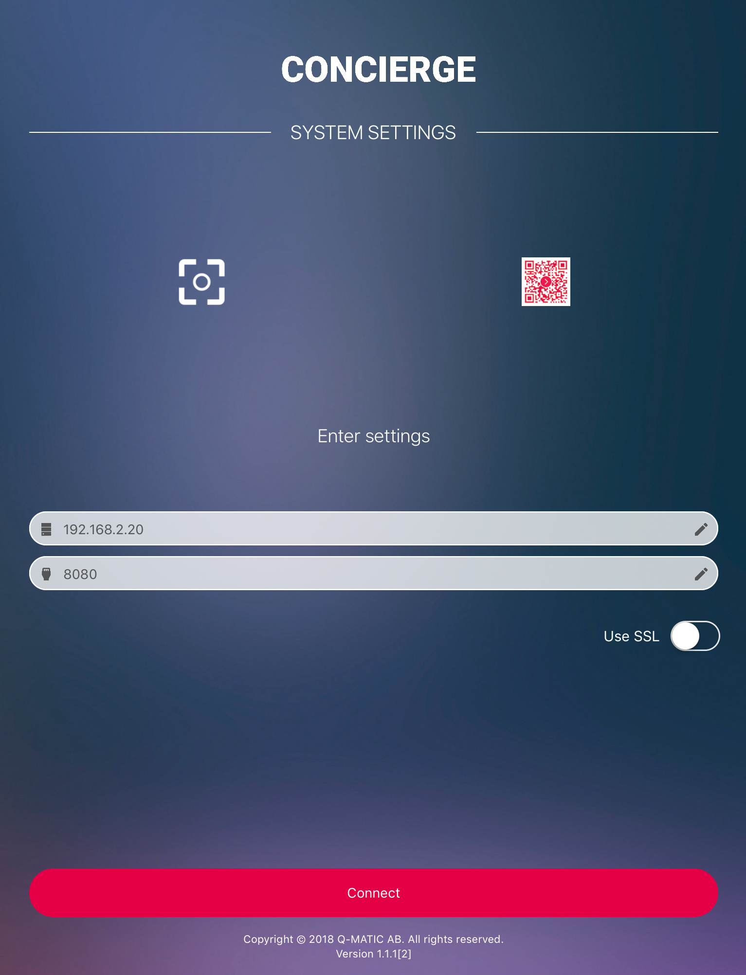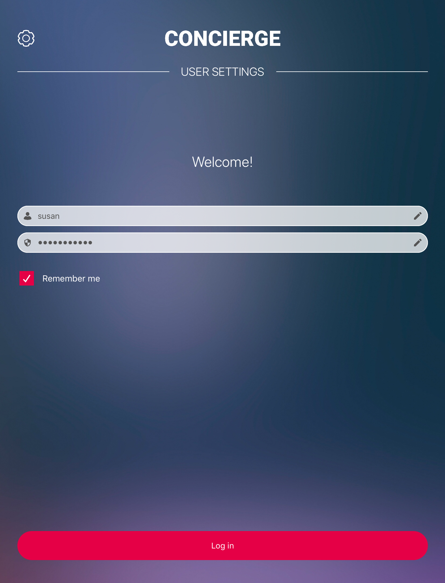 1. Log in to Concierge, by entering your System Settings: