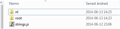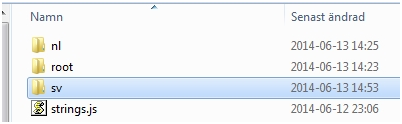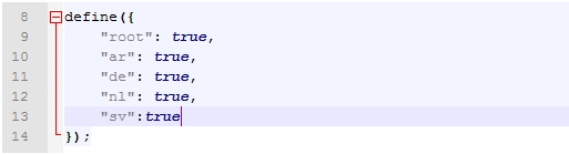 6. Open the strings.js file in the nls folder with your favourite text editor and add an entry for 'sv'