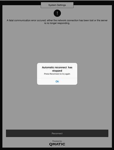 When the automatic reconnect attempts stop, without connection being re-established, you will get the following messages: