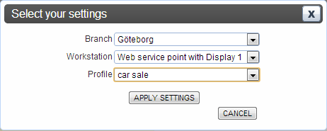 Depending on system settings, the user might be asked to set Branch, Workstation and Profile.